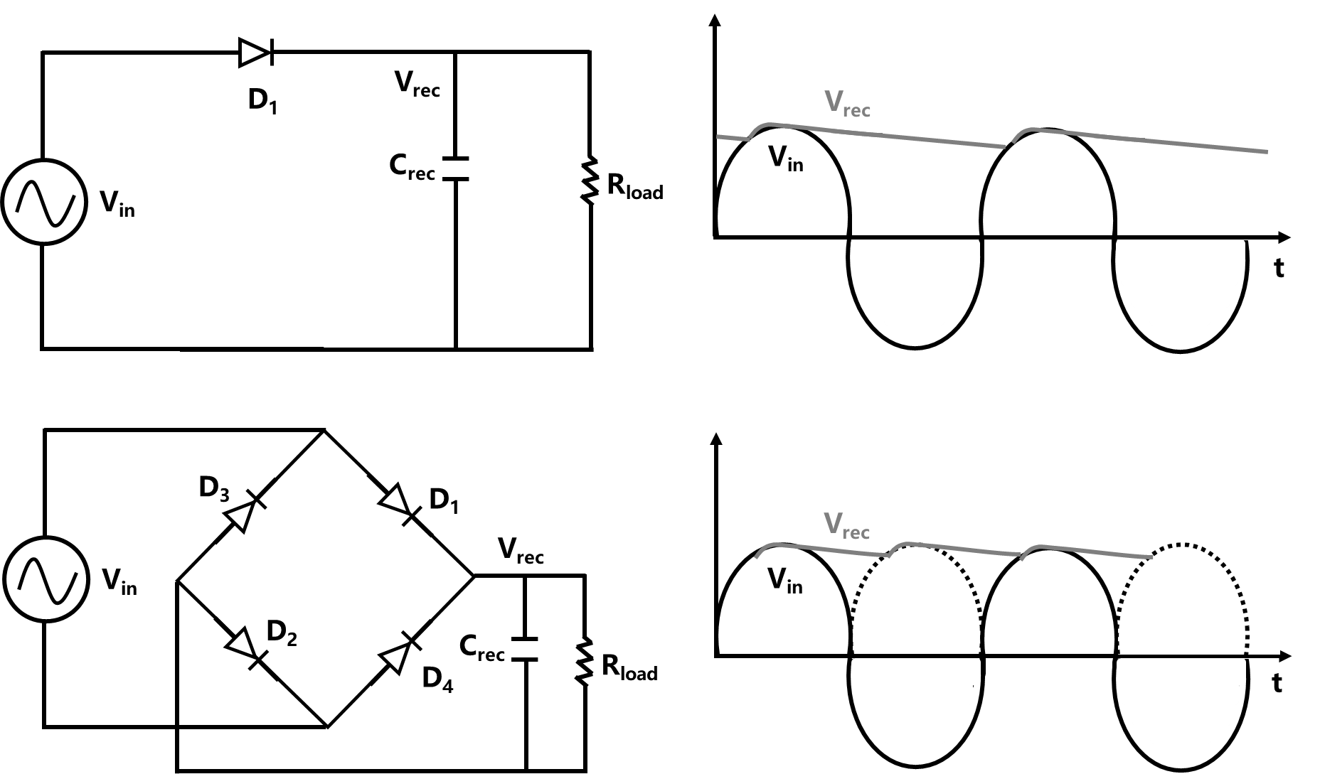 图 8-25 半波整流与全波整流电路